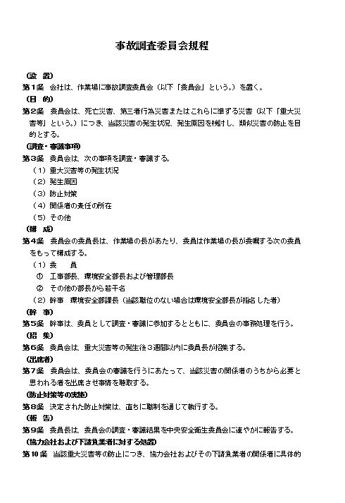 第1条 会社は、作業場に事故調査委員会(以下「委員会」という。)を置く。