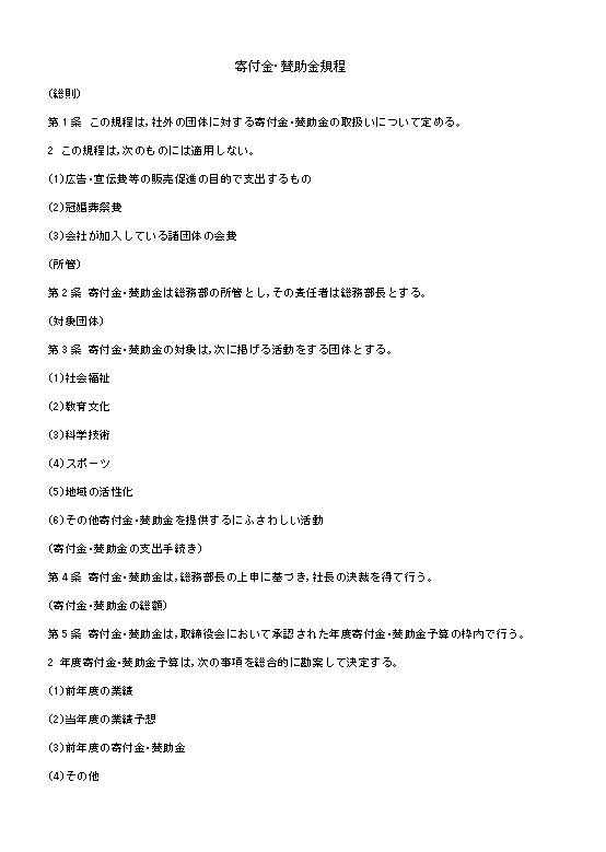 第5条 寄付金·賛助金は,取締役会において承認された年度寄付金·賛助金予算の枠内で行う。