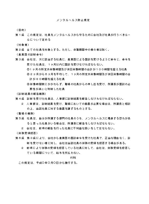 メンタルヘルス防止規程のテキスト