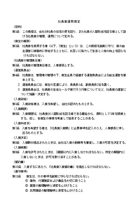 社員寮運用規定のテキスト