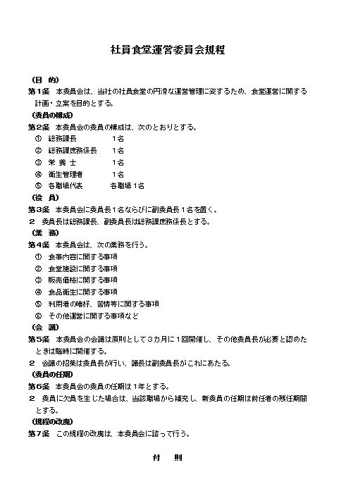 社員食堂運営委員会規程(大会社・製造業) のテキスト