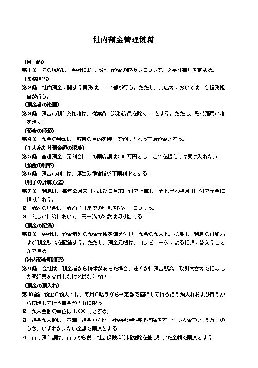 社内預金管理規程①(大会社・労使協定のない場合)
