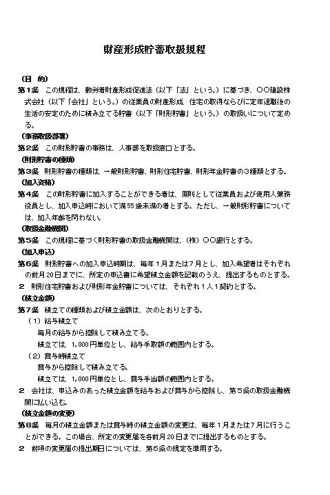 財産形成貯蓄取扱規程①(大会社・建設業)