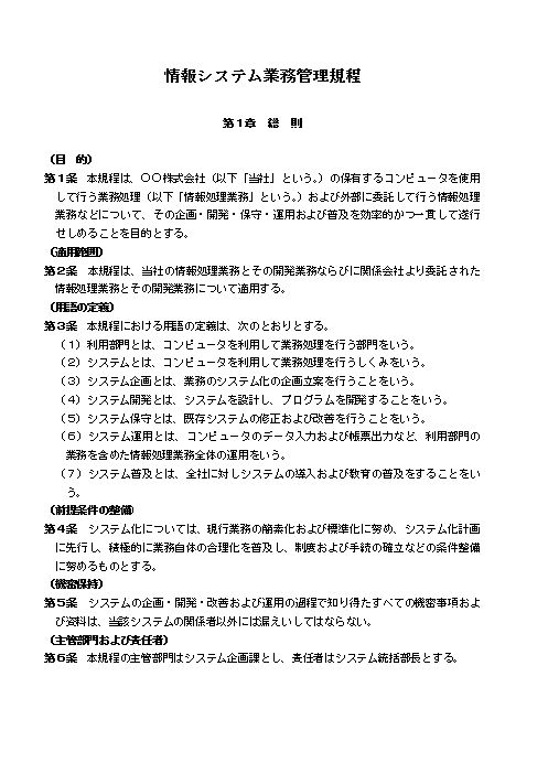 情報システム業務管理規程①(詳細規程・大会社・全業種)