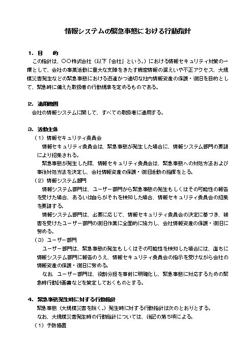 情報システムの緊急事態における行動指針(大会社・全業種)のテキスト