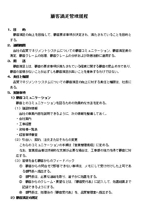 顧客満足管理規程(中小会社・建設業)