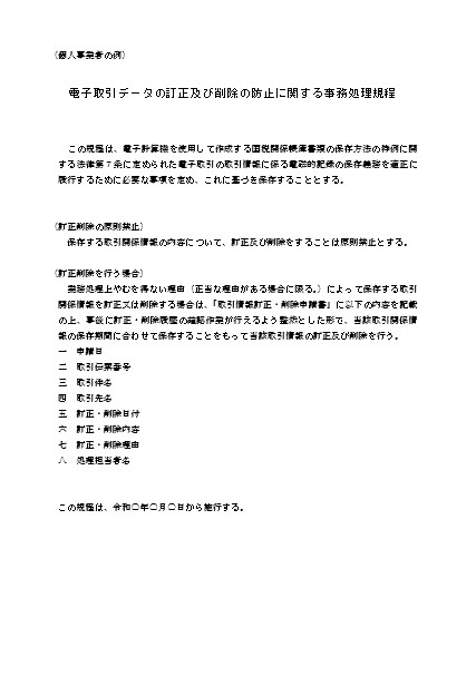 電子取引データの訂正及び削除の防止に関する事務処理規程(個人事業者の例)