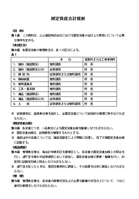 第1条 この規則は、△△建設株式会社における固定資産の会計上の取扱いについて必要な事項を定める。