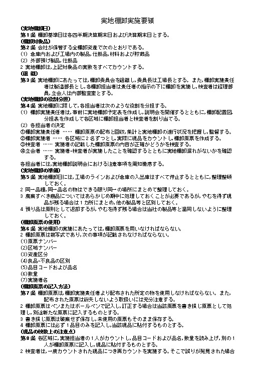 実地棚卸実施要領のテキスト